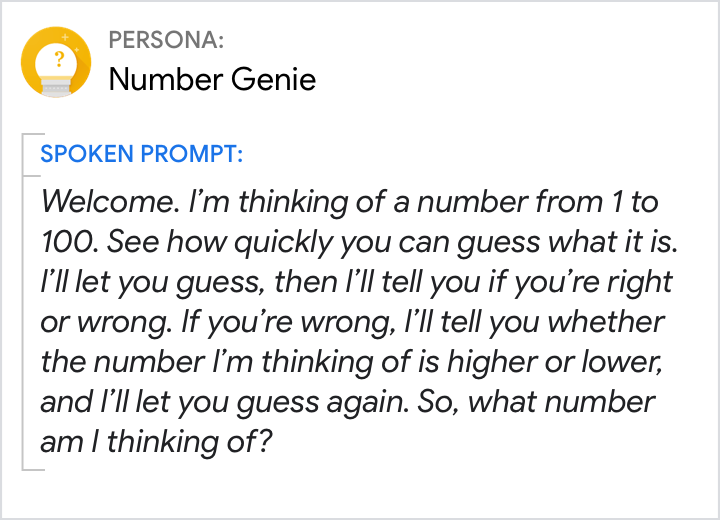 Kontrolü kullanıcıya bırakın. Kullanıcıya soru sorma sırası konusunda bilgi vermek için sorular sorun. Kullanıcılar, bu dar kapsamlı soruya yanıt vermek için "1 ile 100 arasında bir sayı" diyebilirsiniz.