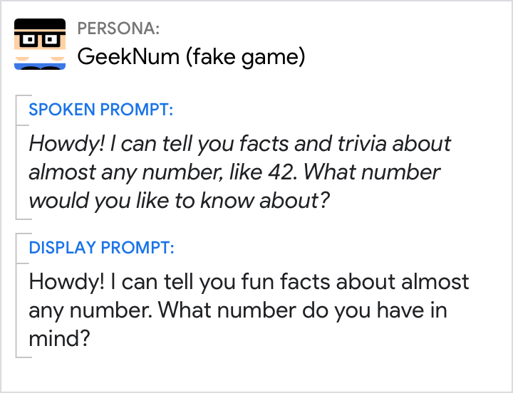 Nói chung, lời nhắc bằng giọng nói được tối ưu hóa và tuân theo các quy ước của hội thoại. Lời nhắc hiển thị được tối ưu hóa và tuân theo các quy ước của cuộc trò chuyện đã viết. Tuy hơi khác một chút nhưng vẫn nên truyền tải cùng một thông điệp cốt lõi.