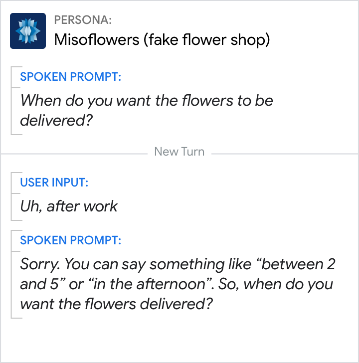 Não coloque sugestões na mensagem falada e nos ícones. Isso faz com que a solicitação falada consuma desnecessariamente tempo.