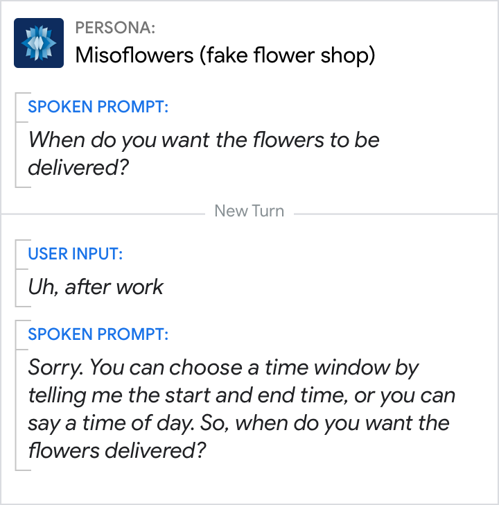 Não coloque sugestões na mensagem falada e nos ícones. Isso faz com que a solicitação falada consuma desnecessariamente tempo.