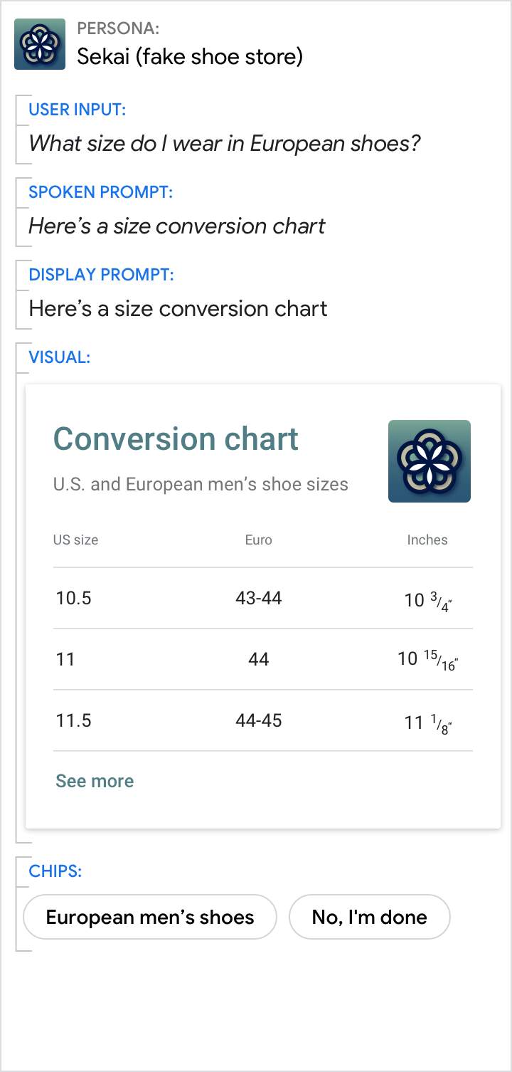 Geh nicht davon aus, dass der Nutzer sofortigen Zugriff auf den Bildschirm hat. Die Aufforderungen sollten immer direkt eine Antwort auf die Frage des Nutzers geben. Ohne diese Frage können die Interaktionen hier auch nicht vorangetrieben werden.