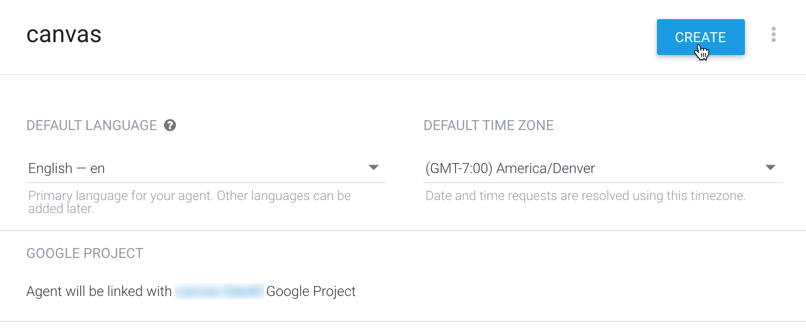 एजेंट बनाने वाले पेज पर, एजेंट के लिए डिफ़ॉल्ट भाषा, टाइम ज़ोन, और नाम की पुष्टि करें. इसके बाद, बनाएं पर क्लिक करें.