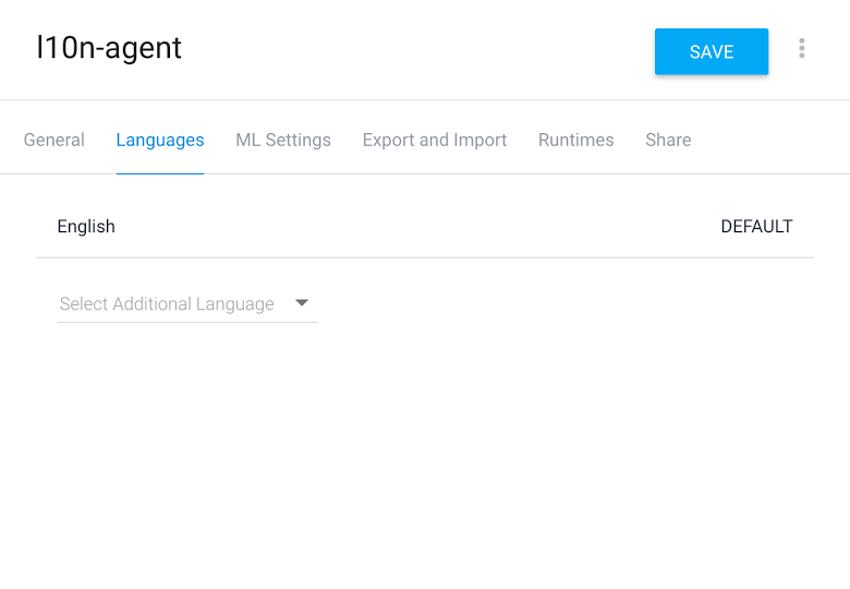 エージェントの歯車アイコンの下にある + アイコンをクリックして、エージェントに言語を追加します。[言語] タブが表示されます。