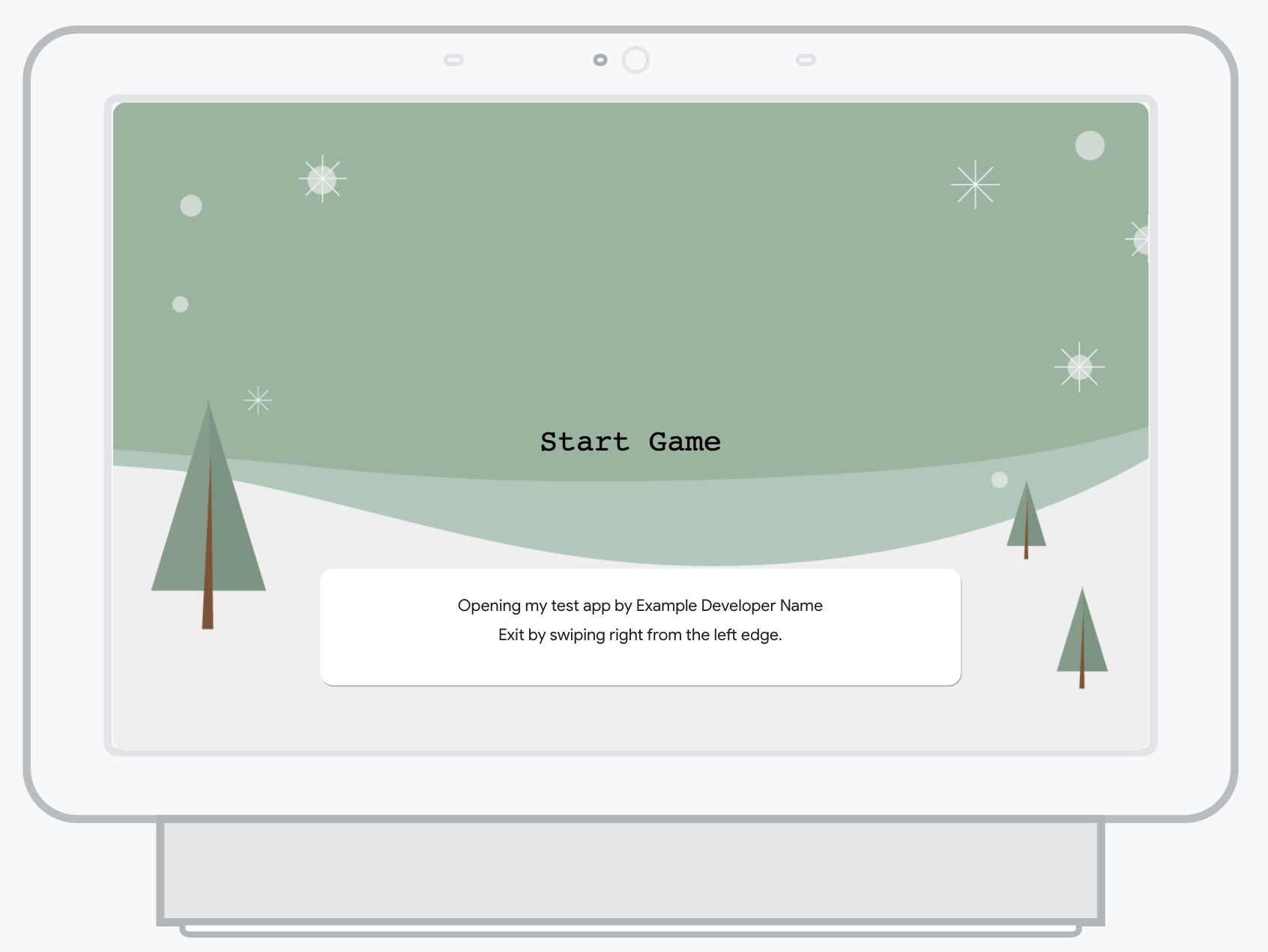 name, the developer's name, and instructions for exiting the Action, and the toast