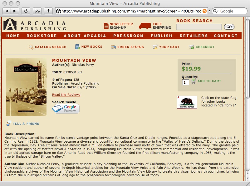 Arcadia Publishing ร่วมมือกับ Google Book Search ตอนที่เว็บไซต์นี้เพิ่งเปิดตัวและพึงพอใจมากกับการเข้าชมและยอดขายที่เกิดจากความสัมพันธ์ดังกล่าว แต่เมื่อผสานรวม API แล้ว ผู้เข้าชมเว็บไซต์ Arcadia ก็สามารถสำรวจประวัติของเมืองของตนเองได้อย่างคร่าวๆ เพื่อดูครอบครัว เพื่อน และสถานที่สำคัญ ซึ่ง Arcadia หวังว่าจะเพิ่มยอดขายได้