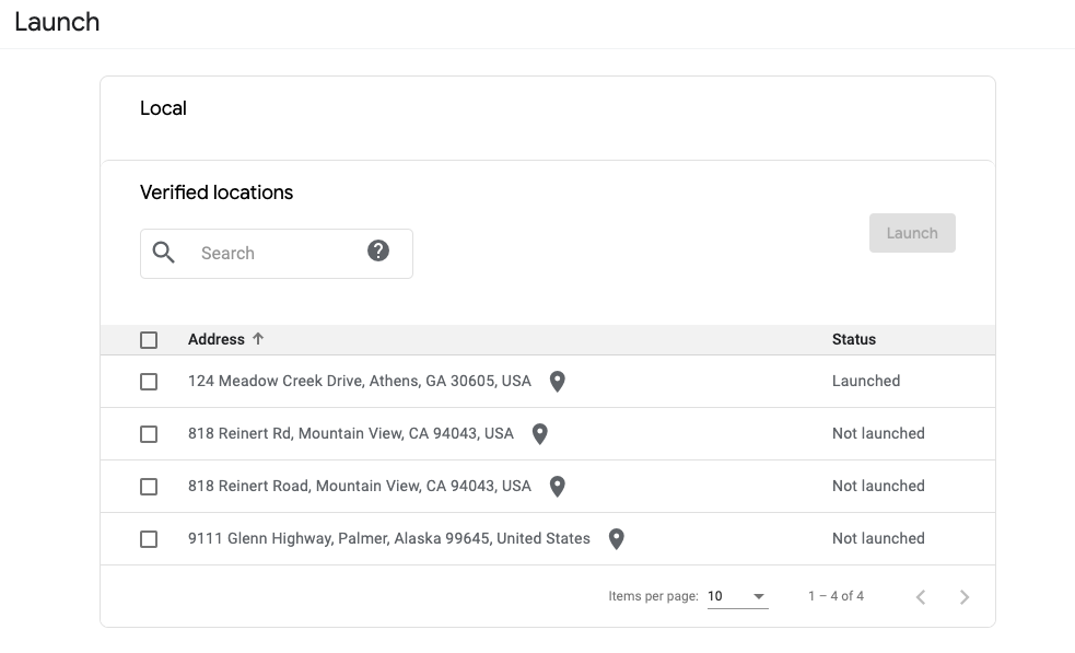 Utilisez cette page pour lancer votre agent pour les points d'entrée de lieu et non locaux, ainsi que pour lancer des établissements individuels.