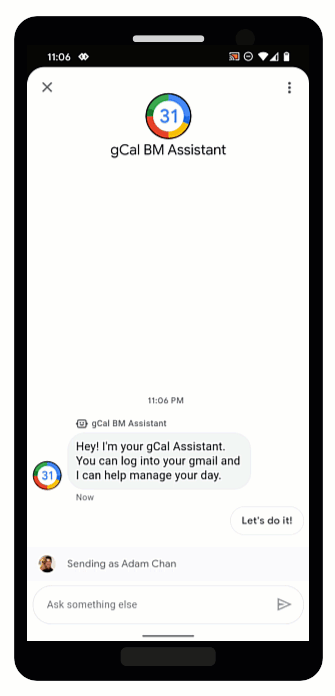 For a sample conversation with authentication, including code samples, see Authenticate the user.