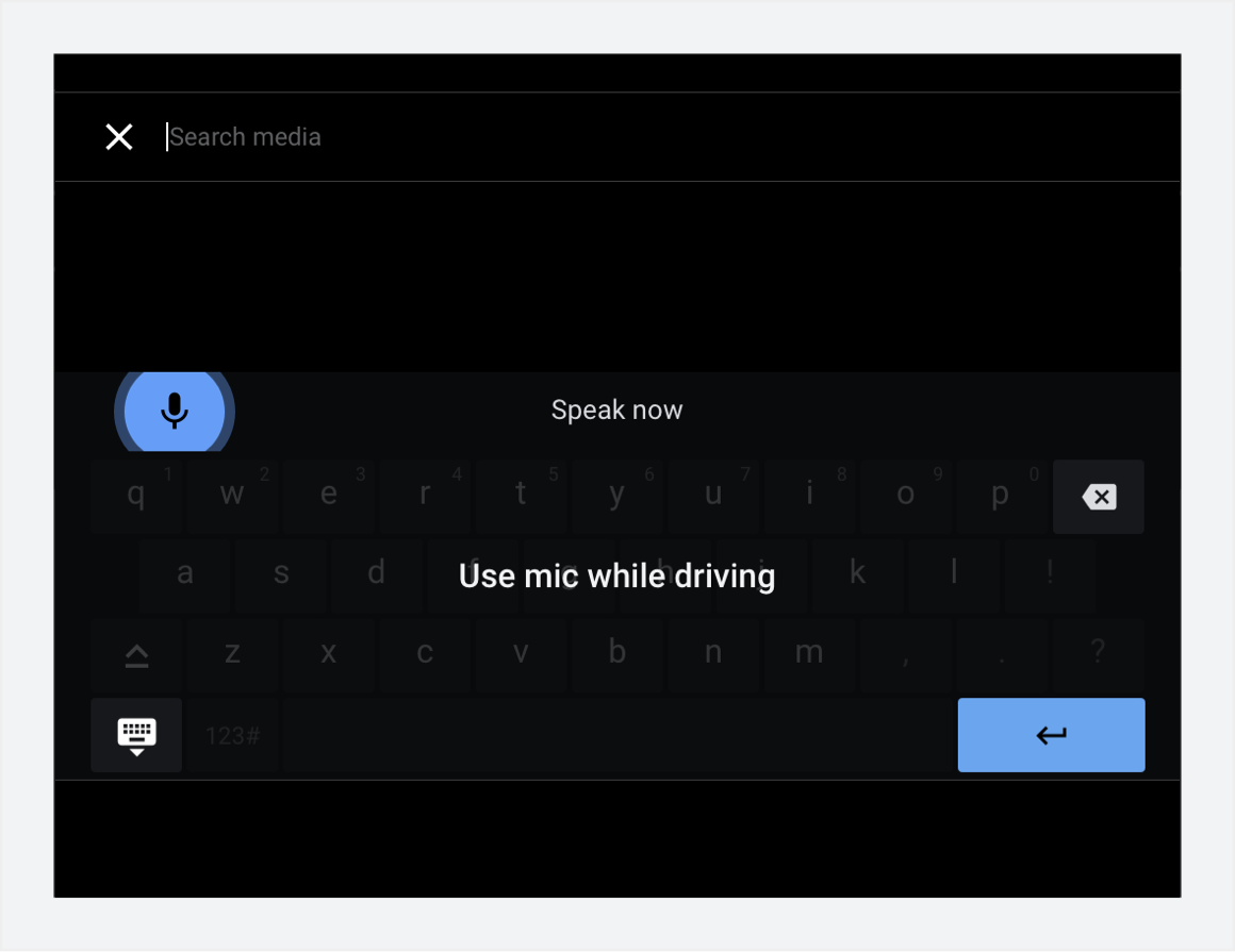 Wenn der Nutzer mit dem Auto unterwegs ist, wird über das Suchangebot die für Fahrten optimierte Tastatur aufgerufen, sodass die Spracheingabe möglich ist. Wenn das Auto parkt, wird die Standardtastatur aufgerufen. Autohersteller entwerfen beide Tastaturen (oder passen die von Google bereitgestellten Tastaturen an).