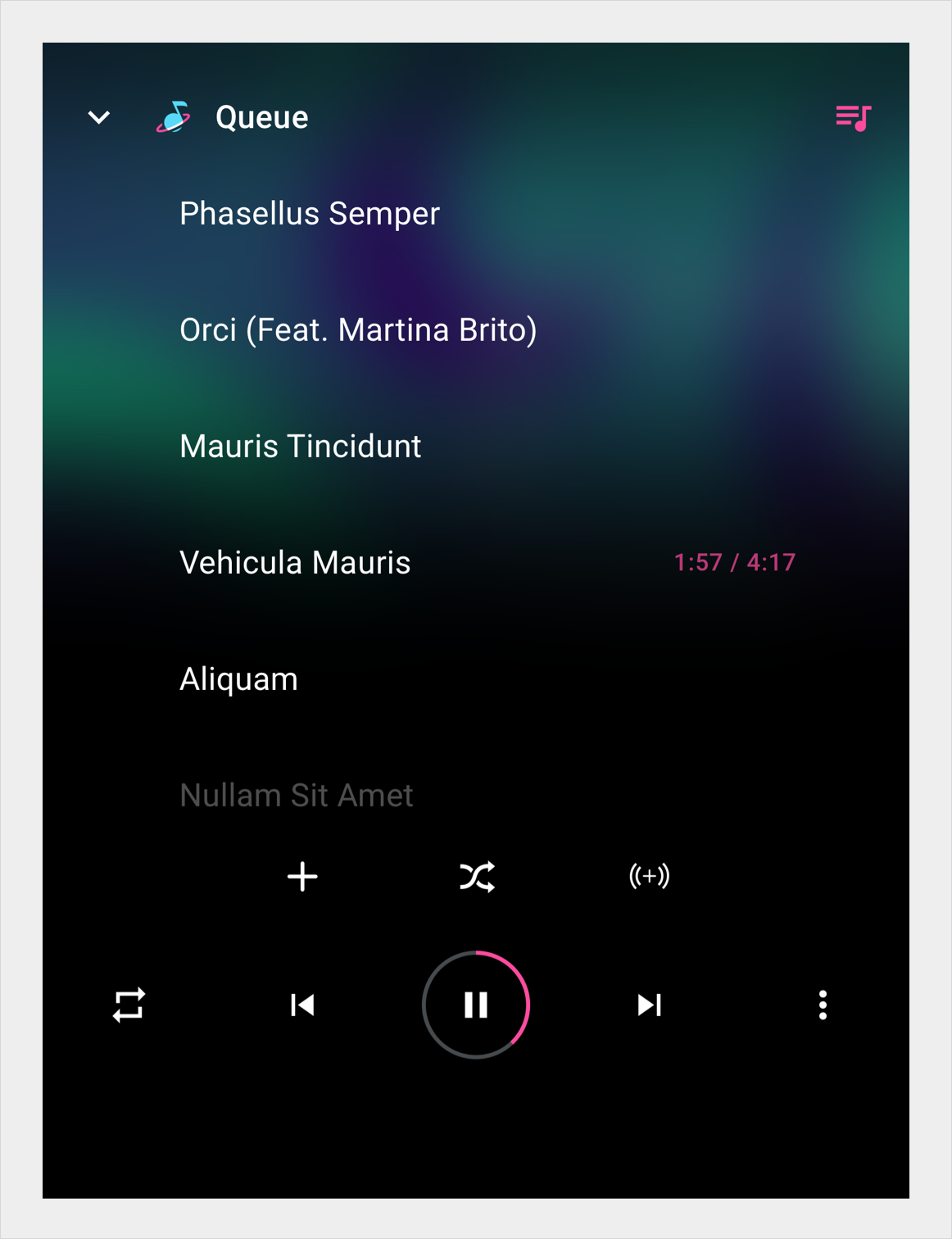 ในแอปสื่อ แถบควบคุมจะใช้ในมุมมองการเล่นสำหรับการควบคุมเล่น/หยุดชั่วคราว ก่อนหน้า ถัดไป และการควบคุมอื่นๆ รวมถึงการควบคุมสำหรับการดำเนินการของบุคคลที่สามที่กำหนดเอง
