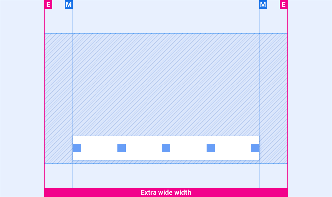 Если ширина между полями превышает максимальную ширину панели управления (1028dp), центрируйте панель управления по горизонтали. Панель управления не доходит до краев.