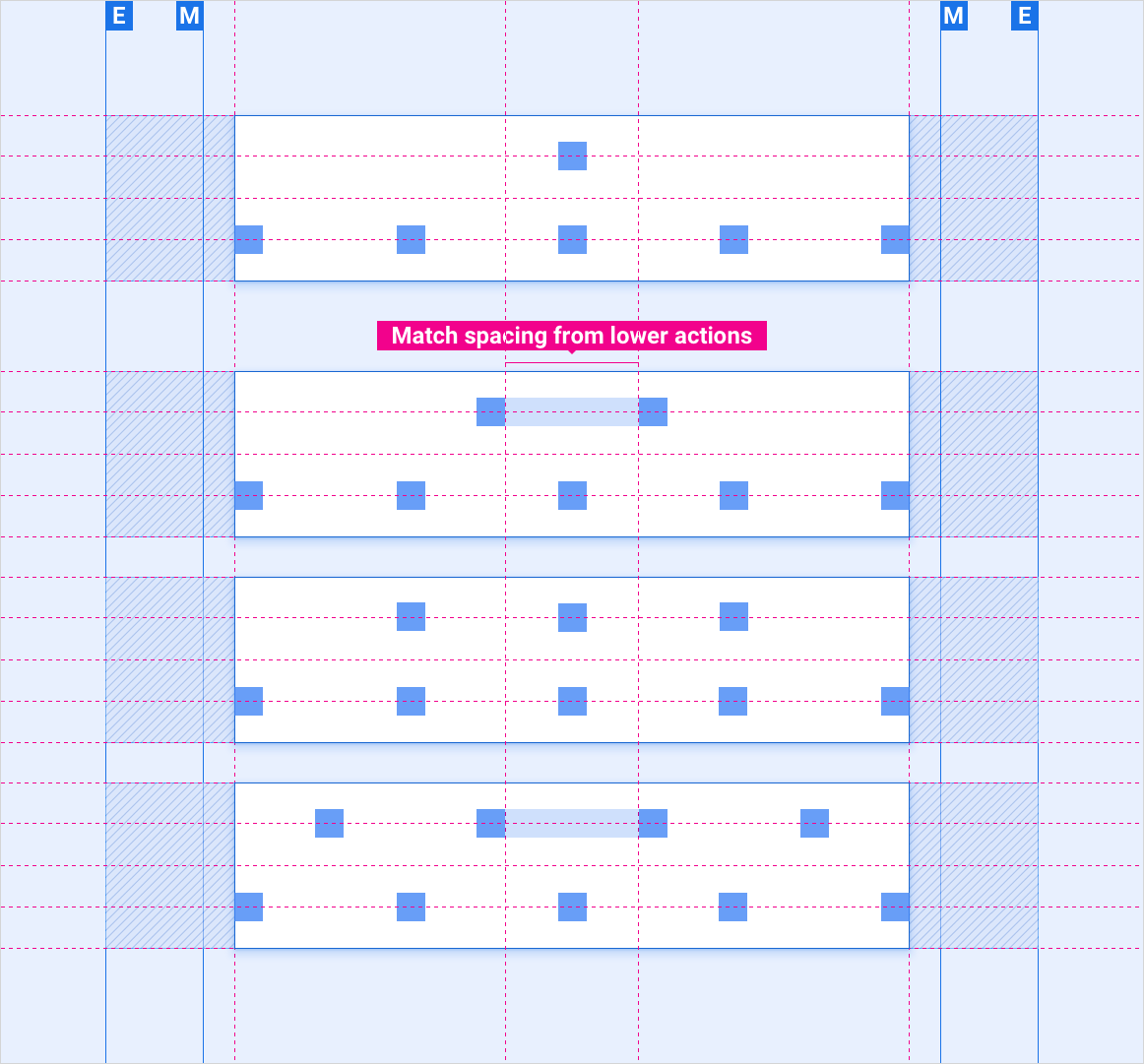 เลย์เอาต์อ้างอิงเหล่านี้จะแสดงวิธีการปรับแถบควบคุมให้เหมาะสมกับหน้าจอที่มีความกว้างและความสูงที่หลากหลาย (หมวดหมู่ความกว้างและความสูงจะกำหนดอยู่ในส่วนการออกแบบ) โปรดทราบว่าค่าพิกเซลทั้งหมดจะเป็นพิกเซลที่แสดงผล ก่อนที่จะเกิดการสุ่มหรือสุ่มขึ้น