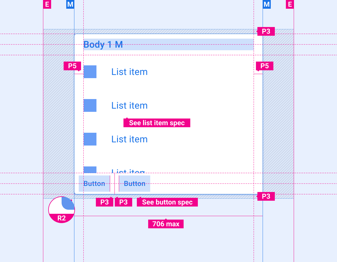 Il sistema di progettazione fornisce indicazioni per personalizzare i componenti utilizzando layout, colore, tipografia e dimensioni.