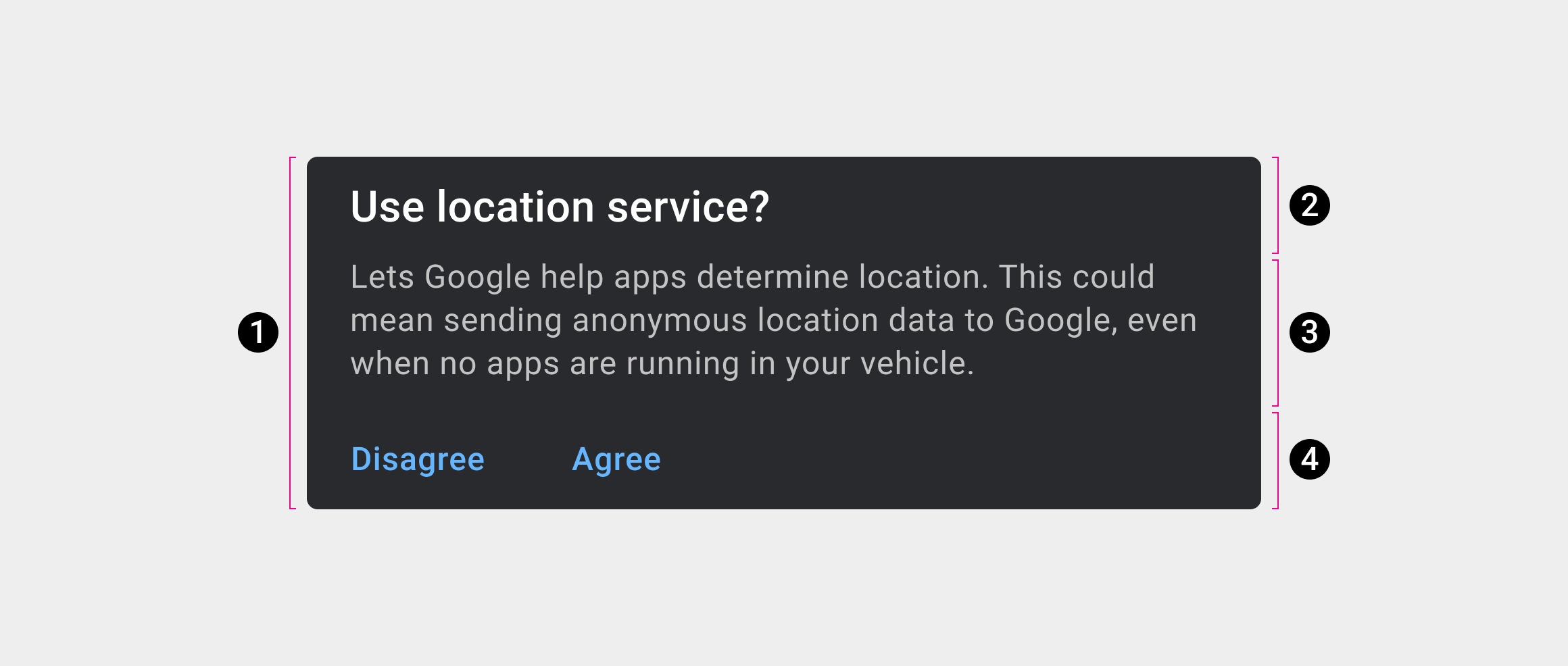 对话框可以是需要用户互动的提醒。它还可以是选择对话框或确认对话框,要求用户做出或确认选择。对话框将一直保持焦点,直至其关闭或执行所需操作。由于对话框具有干扰性,因此应谨慎使用。
