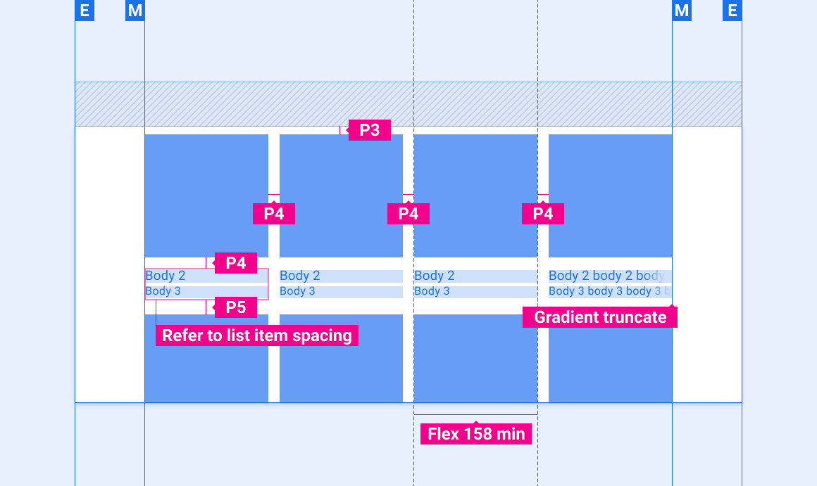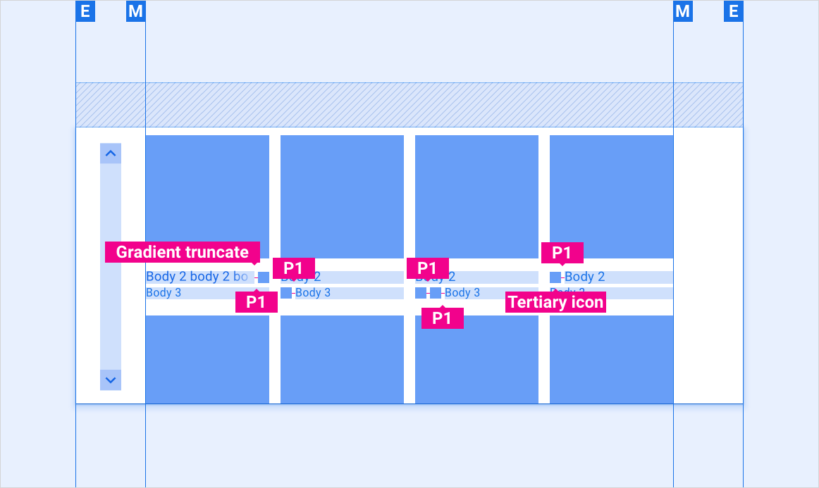 Raster enthalten Text- und UI-Steuerelemente. Da Nutzende auf sie reagieren müssen, sollten sie niemals durch andere Elemente oder den Bildschirmrand verdeckt werden.