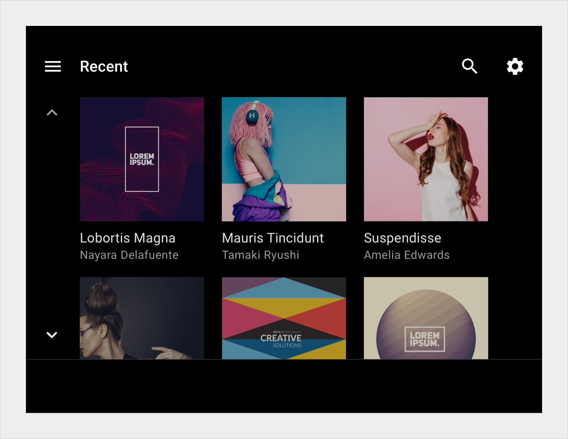 格線可垂直捲動,並依大小、間距和欄數而有所不同。格狀檢視畫面中的內容也可以分門別類。