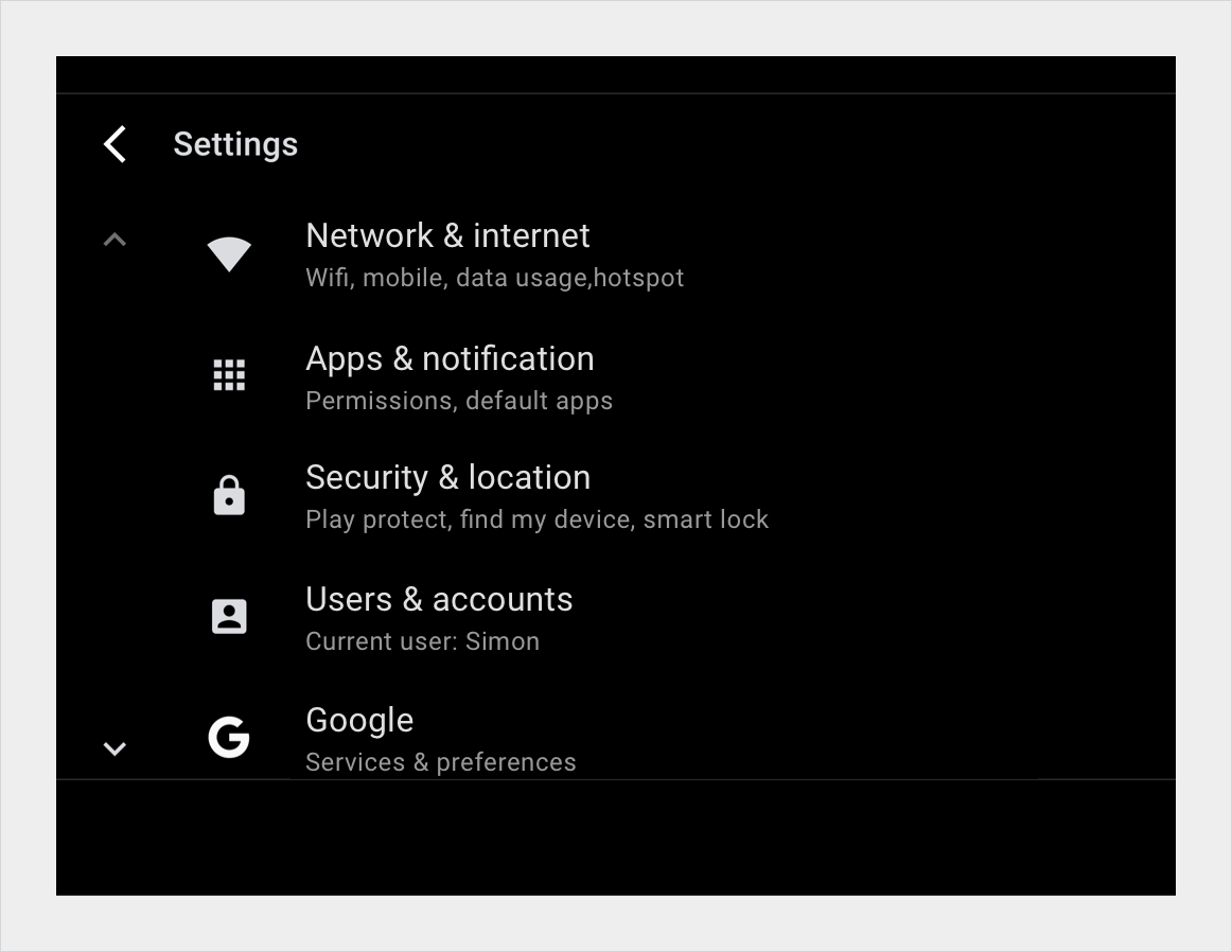 设置列表 - 夜间