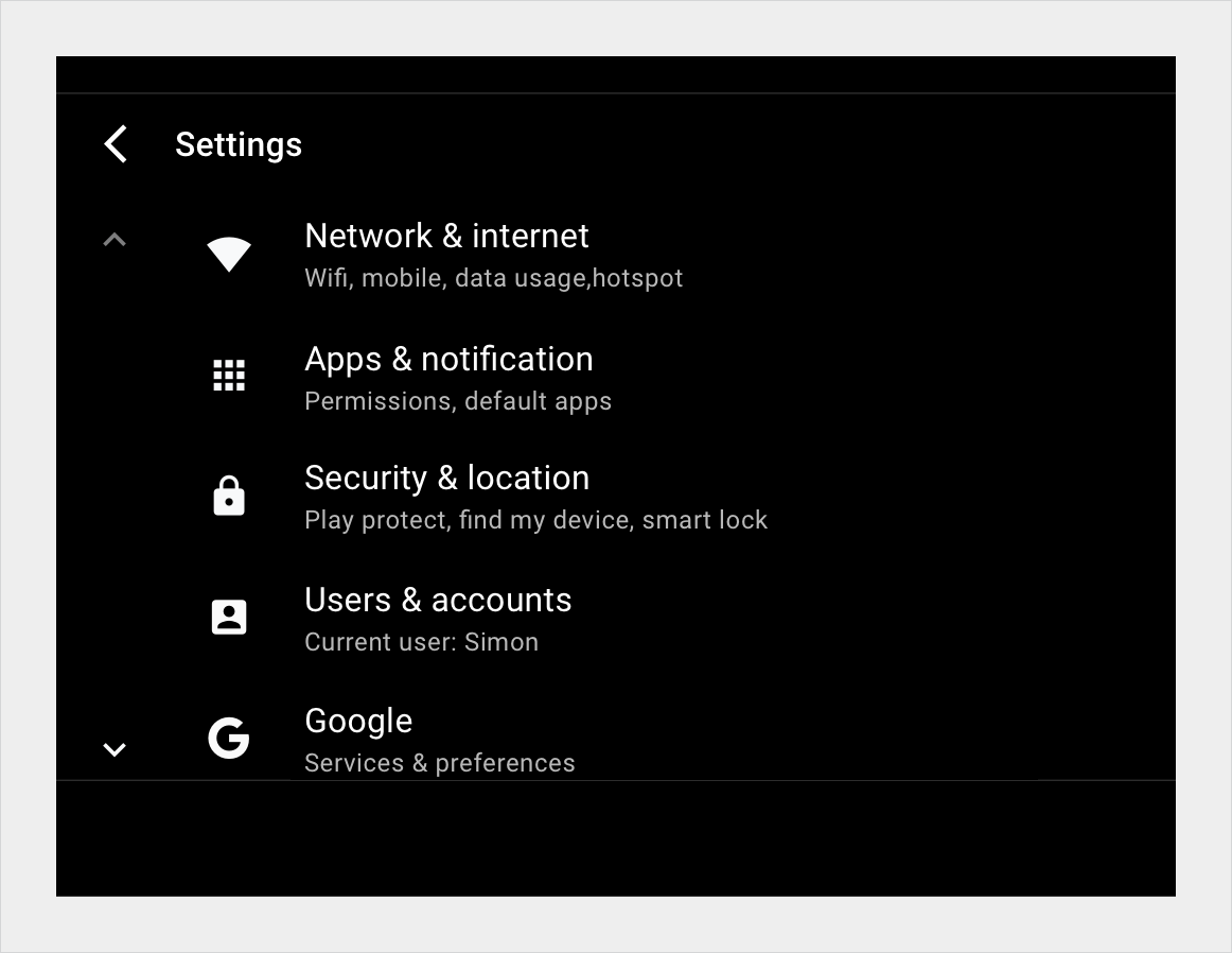 A list view displays content as line items in a single-column list that scrolls vertically. This view is best when users rely on reading text and viewing data to make their selection.
