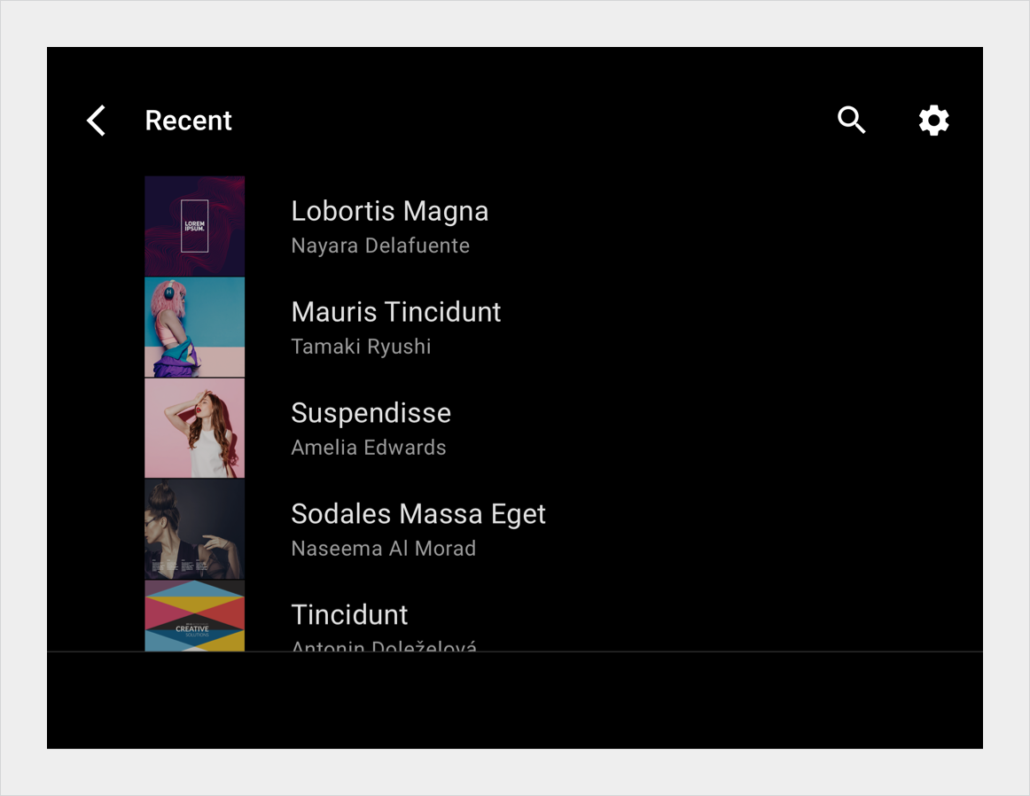 | コンテンツ タイル | リストアイテムの高さ - 1 dp |