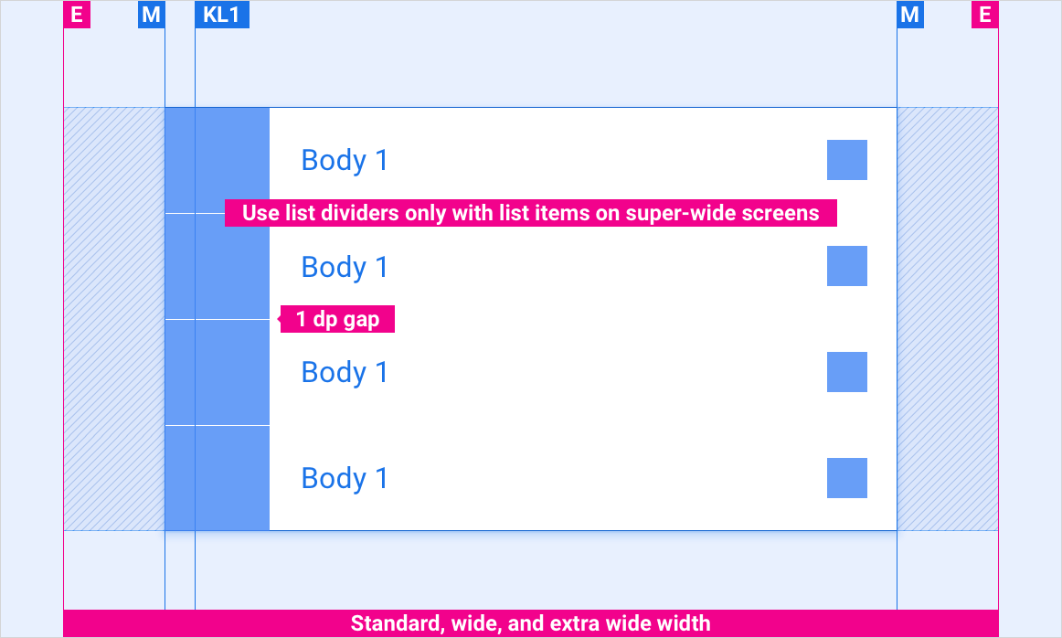 | Inhaltskachel | Höhe des Listenelements minus 1 dp |