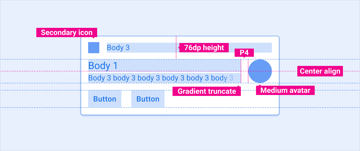 Die Spezifikationen für vertikale Abstände in diesem Abschnitt gelten nur für HUN-Karten. Weitere Informationen zum vertikalen Abstand von Karten im Benachrichtigungscenter finden Sie in den Spezifikationen des Benachrichtigungscenters.