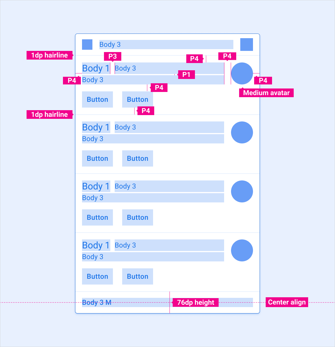 Thiết kế của các thẻ này dành cho Android Automotive OS nhằm giảm thiểu sự phân tâm cho người lái xe. Các thẻ này có 3 phiên bản cơ bản: