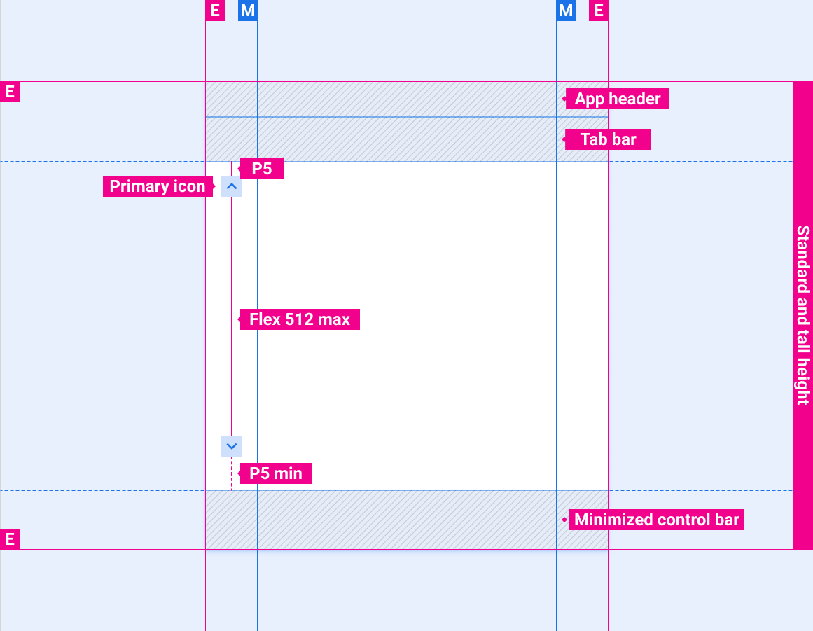 Position der Bildlaufleiste mit App-Kopfzeile und erweiterter Steuerleiste