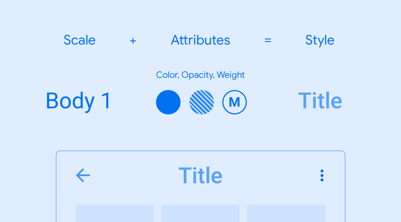 每個樣式都包含一組由比例定義的值以及其他屬性。這些屬性包括字型粗細、顏色和透明度值,且可加到任何類型大小中,建立想要的效果,例如聚焦。
