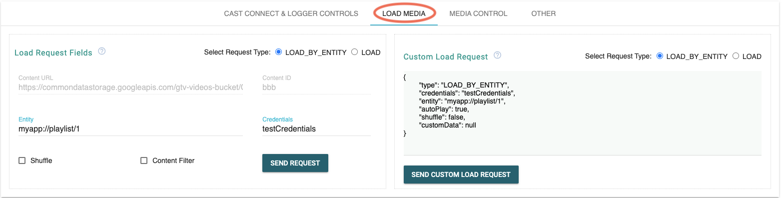 ช่องคำขอโหลดที่กำหนดเองในแท็บโหลดสื่อ ขั้นแรก ให้เลือก