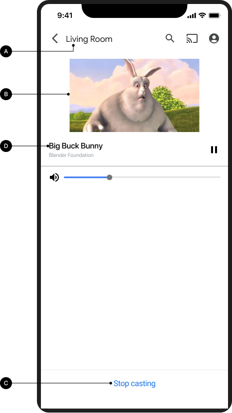 • Untuk pengalaman pengguna terbaik, berikan kontrol persisten selain kontrol dalam dialog Cast.
