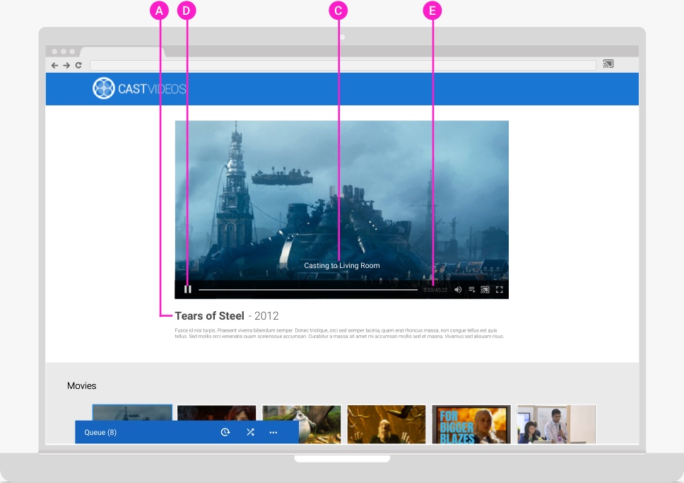 Lưu ý: Theo Điều khoản dịch vụ bổ sung dành cho nhà phát triển của Google Cast SDK, ứng dụng nội dung nghe nhìn Cast phải sử dụng các API điều khiển Play (Thông báo phát nội dung nghe nhìn) được xác định cho SDK để kiểm soát việc phát nội dung nghe nhìn trên Web Receiver.