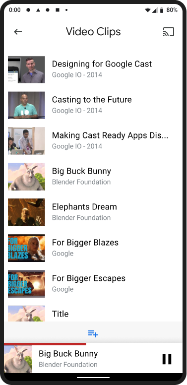 為提供最佳使用者體驗,除了迷你控制器外,請在Cast 對話方塊中提供控制選項。