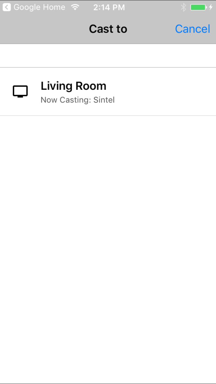 // Get the shared instance of GCKUIStyle. GCKUIStyle *castStyle = [GCKUIStyle sharedInstance]; // Set the property of the desired cast widget. castStyle.castViews.mediaControl.miniController.bodyTextColor = [UIColor redColor]; // Refresh all currently visible views with the assigned styles. [castStyle applyStyle];