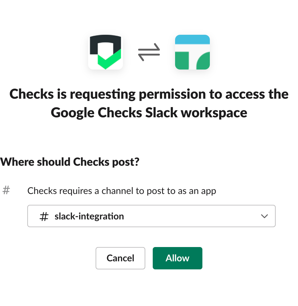 Dengan integrasi Slack Checks, akun Checks Anda dapat memposting ke ruang kerja Slack sebagai respons terhadap peristiwa, seperti saat laporan selesai atau aktivitas baru terdeteksi di salah satu aplikasi Anda.