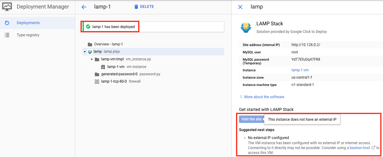 Deployment Manager ana sayfasına yönlendirilirsiniz ve kaynaklarınızın oluşturulduğunu görürsünüz.