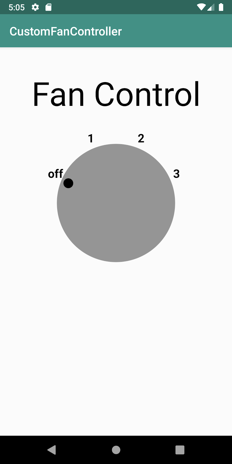 CustomFanController, atau buka dengan tombol Ringkasan atau Terbaru di perangkat Anda. Dengan TalkBack aktif, perhatikan bahwa nama aplikasi diucapkan, serta teks labelTextView("Fan Control"). Namun, jika Anda mengetuk tampilanDialViewitu sendiri, tidak ada informasi yang diucapkan tentang status tampilan (setelan saat ini untuk tombol) atau tindakan yang akan terjadi saat Anda mengetuk tampilan untuk mengaktifkannya.