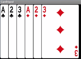 לדוגמה, כשמציירים ערימה של כרטיסים חופפים כמו שמוצג למטה, במקום לצייר כל כרטיס מהחלק התחתון כלפי מעלה, בדרך כלל יעיל יותר לצייר רק את החלקים הגלויים. התשובה היא 'בדרך כלל', כי גם לפעולות חיתוך יש עלות, ובסך הכול, מערכת Android מבצעת הרבה אופטימיזציה של ציור.