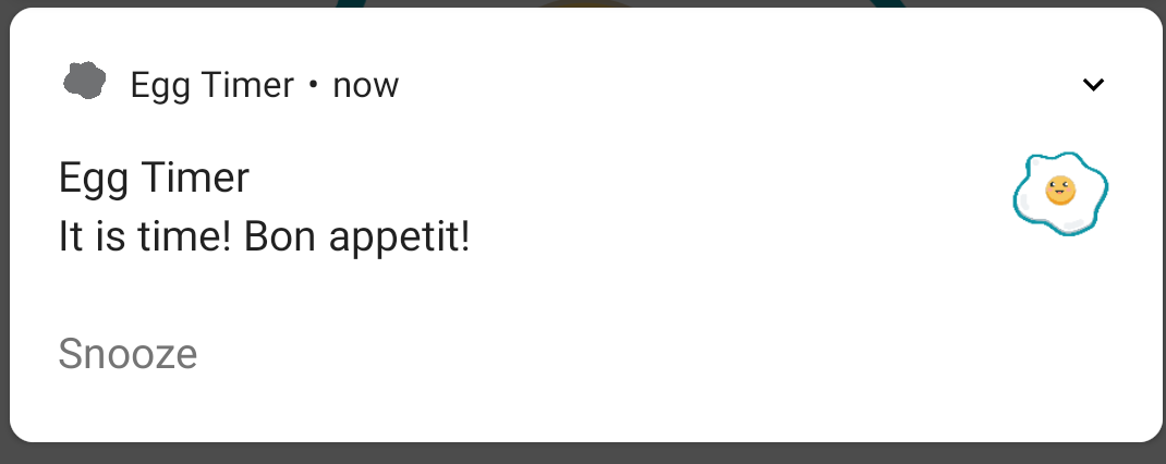 В идеале таймер для варки яиц должен выдавать уведомления об истечении времени. Пользователю действительно важно знать, что яйца готовы, немедленно, иначе они пережарятся! Уведомления визуальные, могут сопровождаться звуками и даже вибрировать — всё это для привлечения внимания! Так вы сможете добиться идеальной варки яиц и довольных, сытых пользователей.