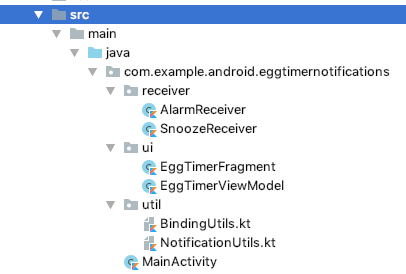 для получения нажатия пользователем кнопки «Уведомление». Далее вы добавите код для откладывания уведомления о приготовлении яиц на 60 секунд при нажатии пользователем кнопки «Отложить». При нажатии кнопки «Отложить» SnoozeReceiver