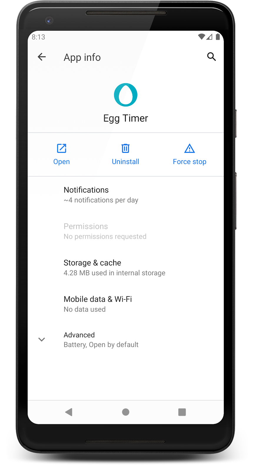. Изначально для приложения-таймера для яиц был задан низкий уровень важности. Вы можете использовать один из пяти уровней важности: от IMPORTANCE_NONE(0)