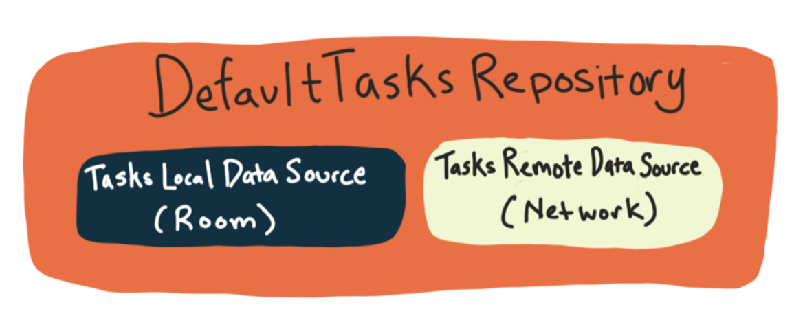 따라서 DefaultTaskRepository의 모든 메서드는 데이터 소스 클래스의 메서드를 호출하고, 데이터 소스 클래스는 데이터베이스에 정보를 저장하거나 네트워크와 통신하기 위해 다른 클래스의 메서드를 호출합니다.