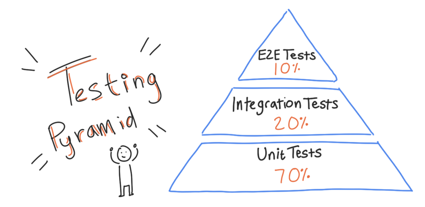 這些測試的建議比例通常以金字塔表示,其中絕大多數是單元測試。