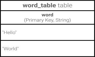Die Daten für diese App sind Wörter. Sie benötigen also eine einfache Tabelle, in der diese Werte gespeichert werden: