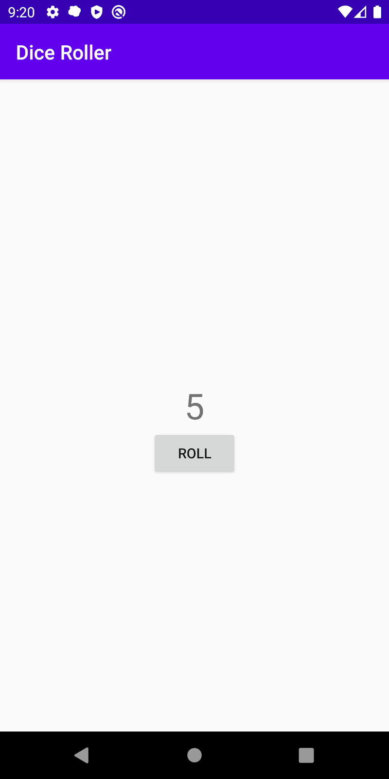 }Tıklama dinleyicisiyle ilgili talimatlar yalnızca 1 satır uzunluğunda olduğundan rollDice() yöntem çağrısını ve küme parantezlerini tek bir satırda birleştirebilirsiniz. Bu şekilde görünür. Üç satır yerine tek satır!