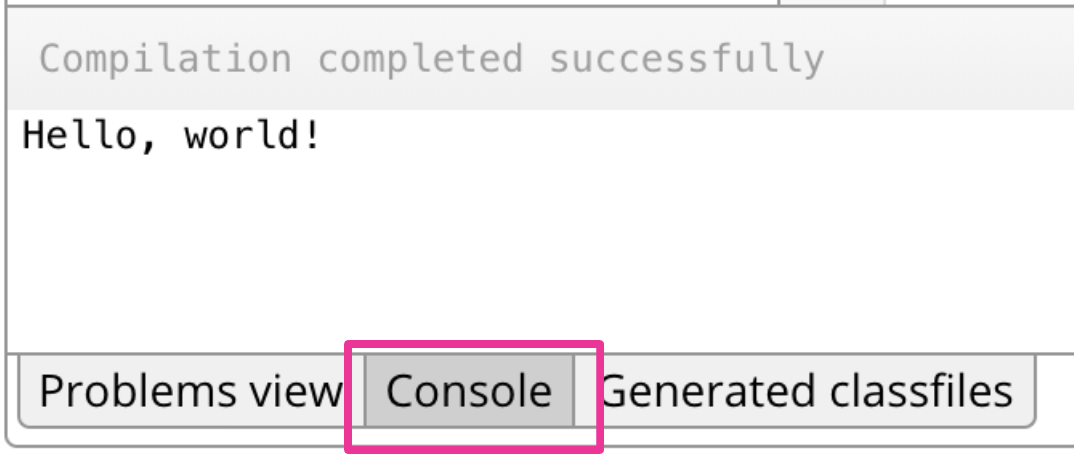 - 点击控制台标签页。控制台是程序可以向其输出文本的地方。