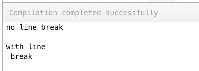 。添加换行符会更改输出,如下所示。