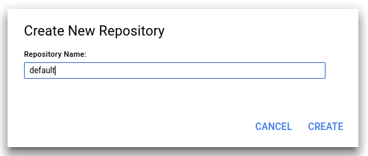 "default" adlı yeni bir kod deposu oluşturmak için "CREATE REPOSITORY" (DEPO OLUŞTUR) seçeneğini tıklayın: