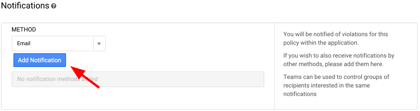 Ahora, en la sección del método de notificación, haz clic en "Agregar notificación".