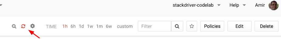 כדאי להקדיש זמן כדי להכיר את האופן שבו אפשר לנווט במרכזי הבקרה ובתרשימים ולהשתמש בהם. מעבירים את העכבר מעל קווי התרשים כדי לראות מה קורה. משנים את משך הזמן של התרשימים (האמצעים לשינוי נמצאים בפינה השמאלית העליונה). תמיד אפשר לחזור לתצוגת דף הבית על ידי לחיצה על הלוגו של Stackdriver בפינה הימנית העליונה של המסוף.