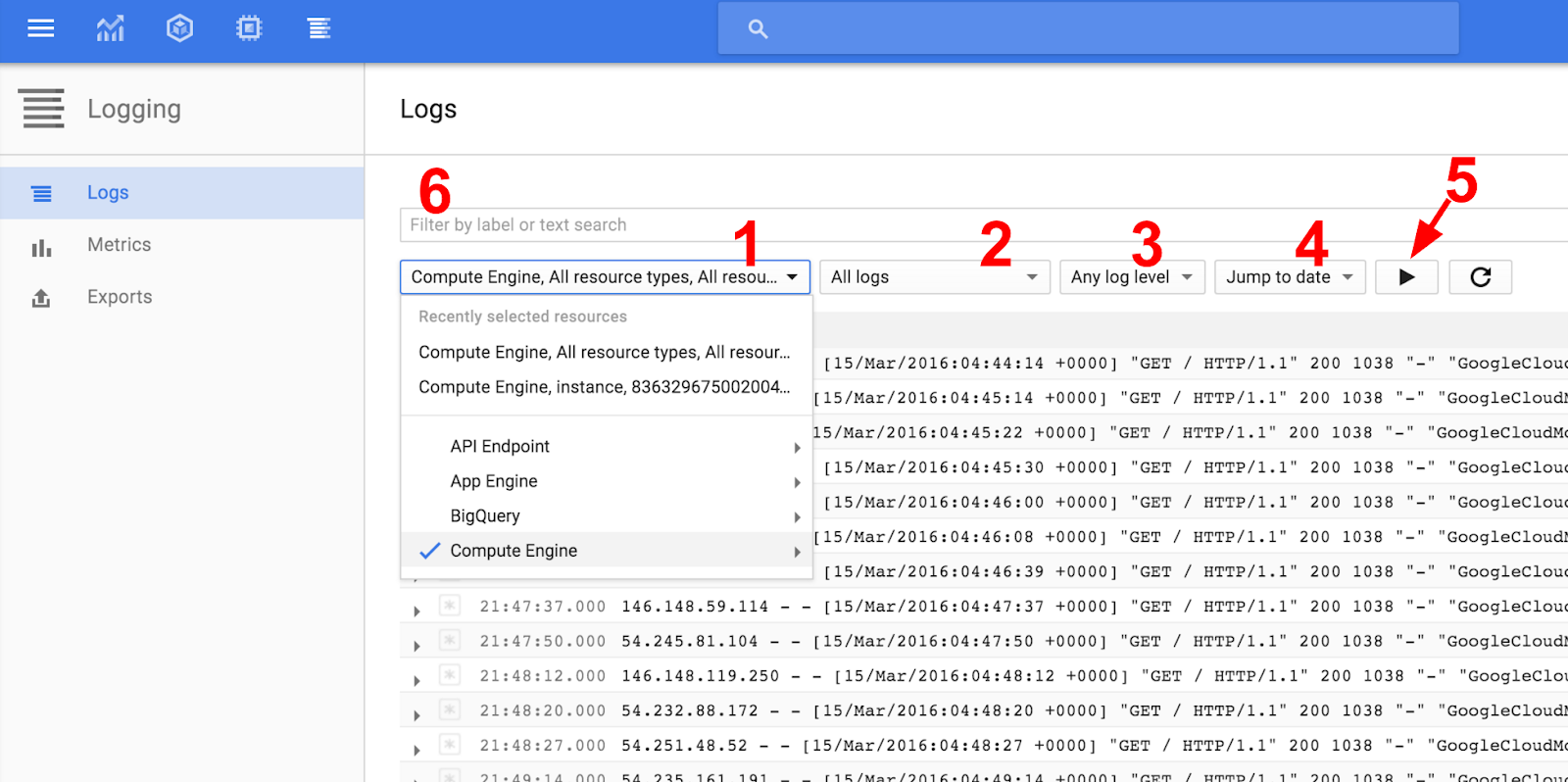 Cloud Logging הוא פתרון של רישום ביומן כשירות (logging-as-a-service) שמציע מקום מרכזי ונוח לצפייה ביומנים ולשאילת שאילתות לגביהם ממקורות שונים. אפשר גם להשתמש ביומנים כדי לייצא אותם ליעדים אחרים (Google Cloud Storage, Google BigQuery או Google Cloud Pub/Sub).