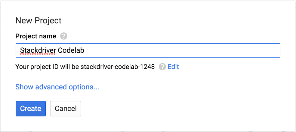 プロジェクト ID を忘れないようにしてください。プロジェクト ID はすべての Google Cloud プロジェクトを通じて一意の名前にする必要があります。以降、このコードラボでは PROJECT_ID